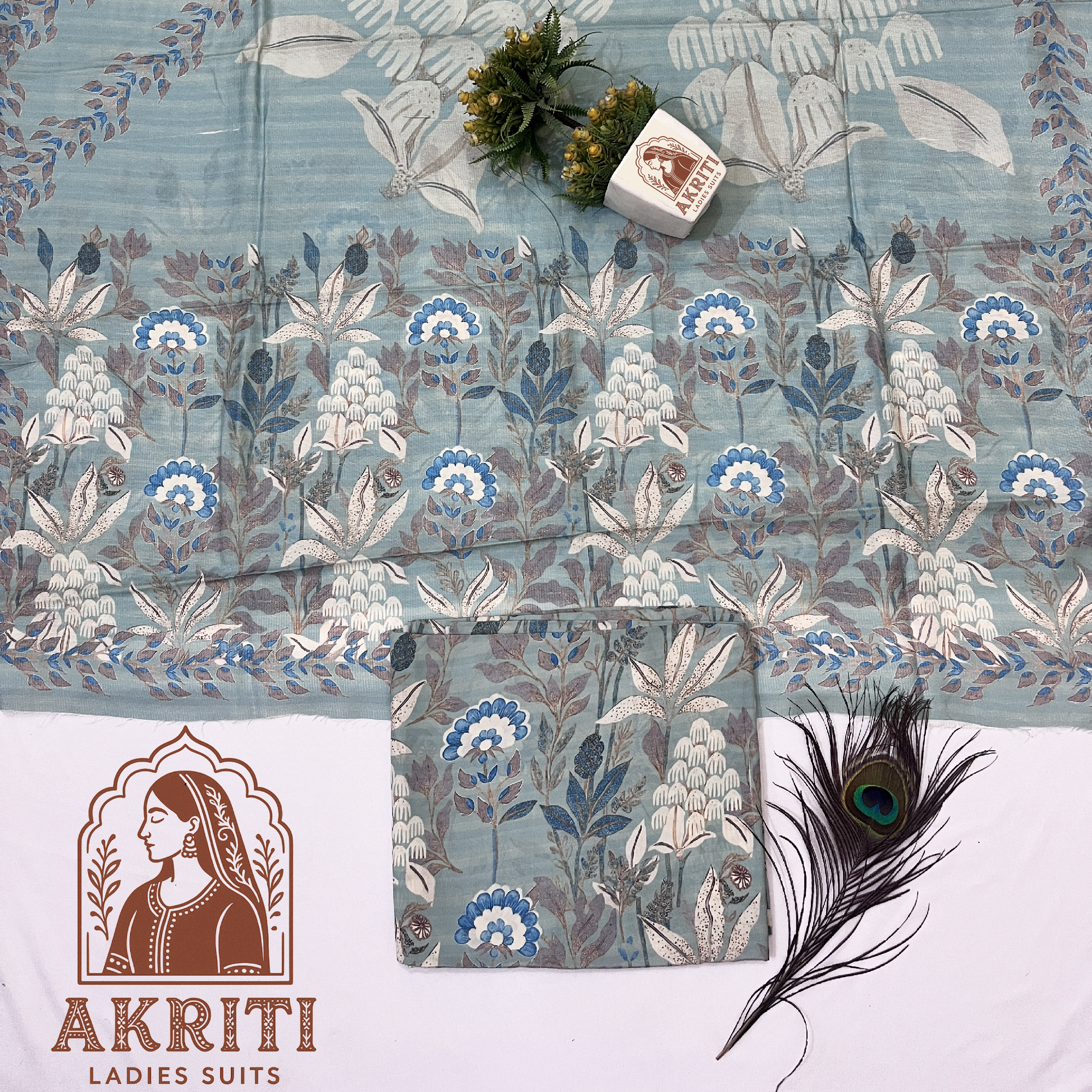Printed on VISCOSE CRAPE fabric and SUMMER CHECK dupatta with a CRAPE DYED bottom